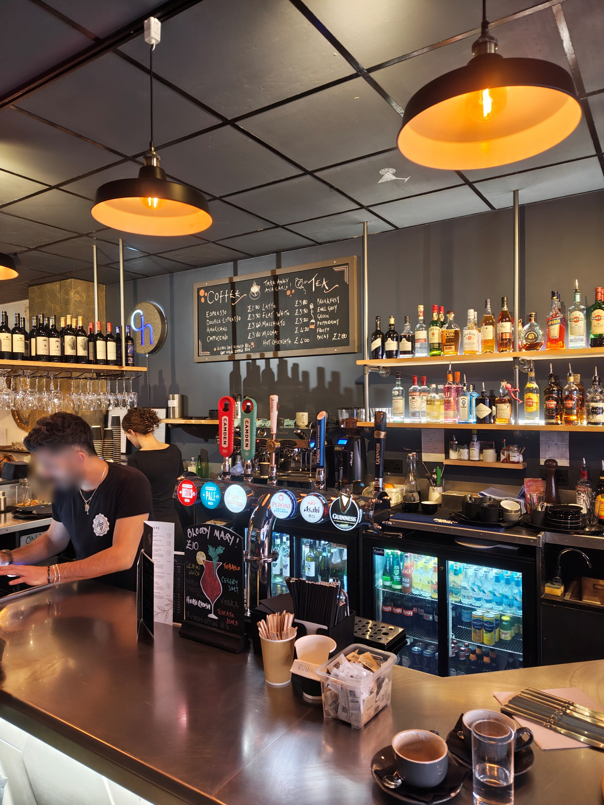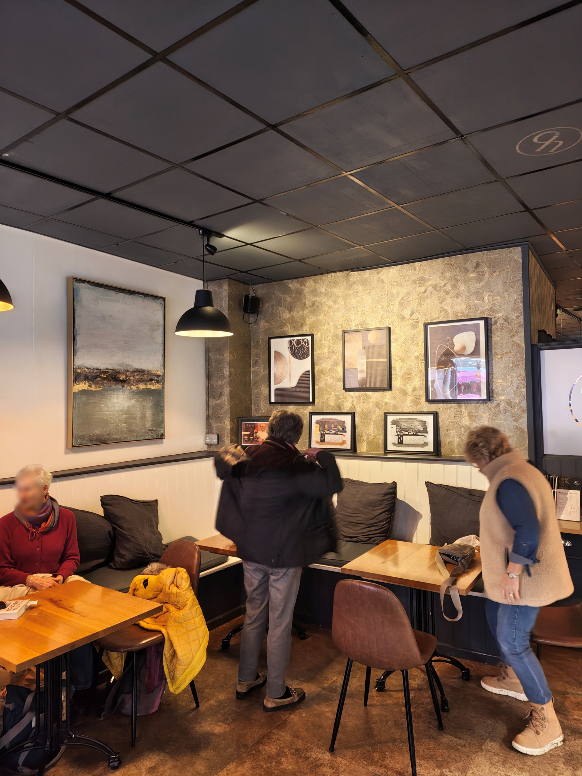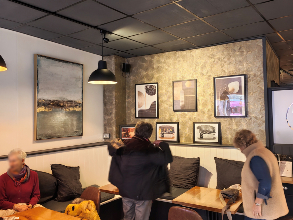 Dark, chic and very stylish where the first works that came to mind when walking into this cafe/restaurant. Their use of mood lighting, paired with the countless amounts of modern art on the walls, with some art pieces being on sale, made me feel like I was entering a high society luxury restaurant. Rather than just another cafe on the high street. This was a very pleasant surprise with the drastic change from farmers market on the high street to high society made me take a second to take it all in. With every art piece on the walls both matching the aesthetic of the restaurant, but feeling completely unique and meaningful in their own right.